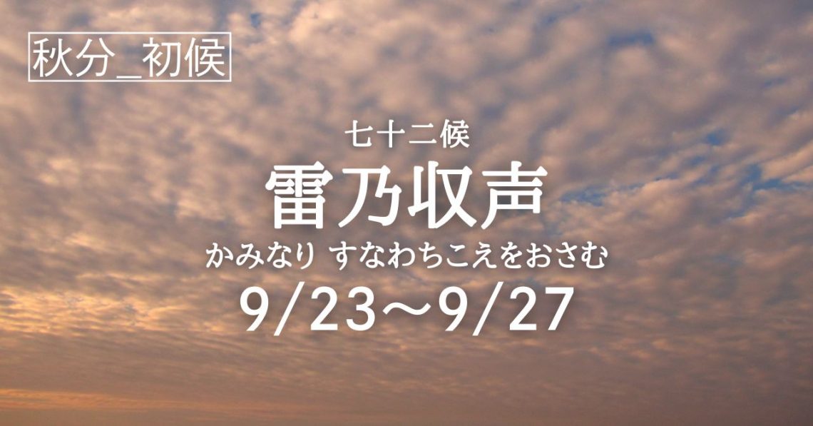 二十四節気「秋分」の初候は七十二候「雷乃収声(かみなり すなわち こえをおさむ)」の5日間となります。
