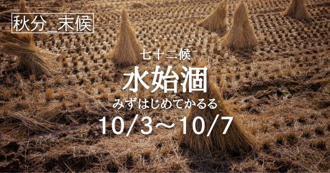 二十四節気「秋分」の末候は七十二候「水始涸(みず はじめてかるる)」の5日間となります。 七十二候で「水始涸(みず はじめてかるる)」という時季に入ります。 これは文字通り田んぼの水が枯れるということではなく、稲穂の刈り…