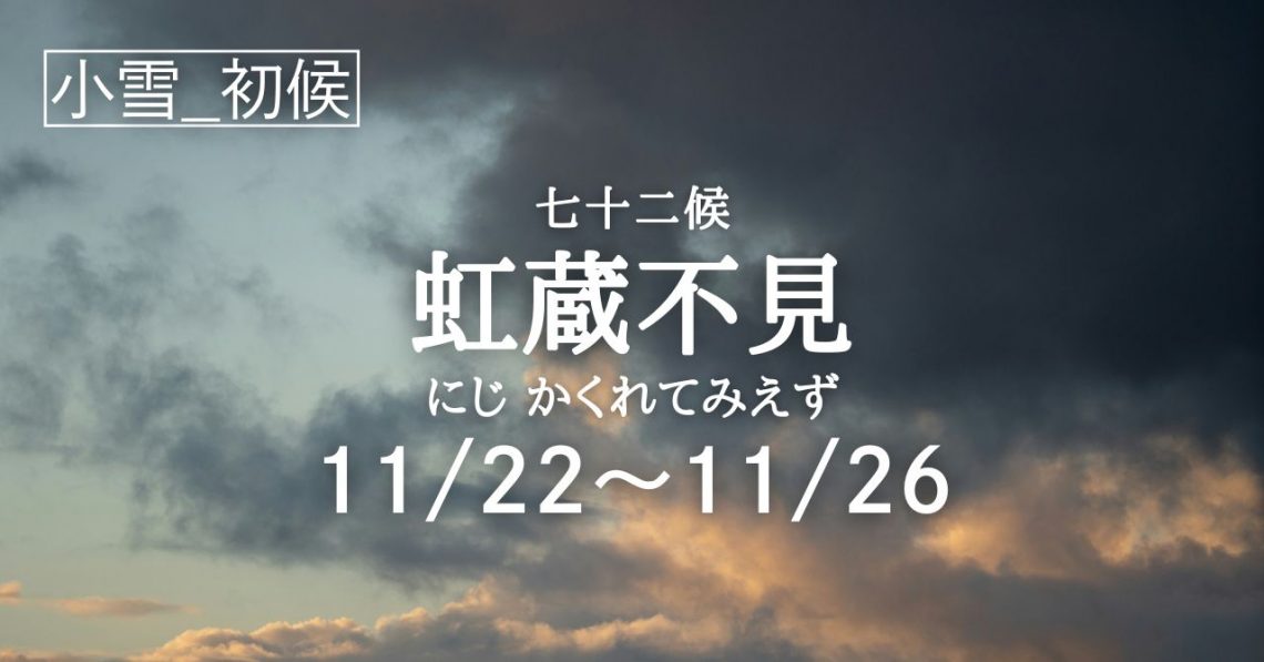 二十四節気「小雪」の初候は七十二候「虹蔵不見(にじ かくれて みえず)」の5日間となります。