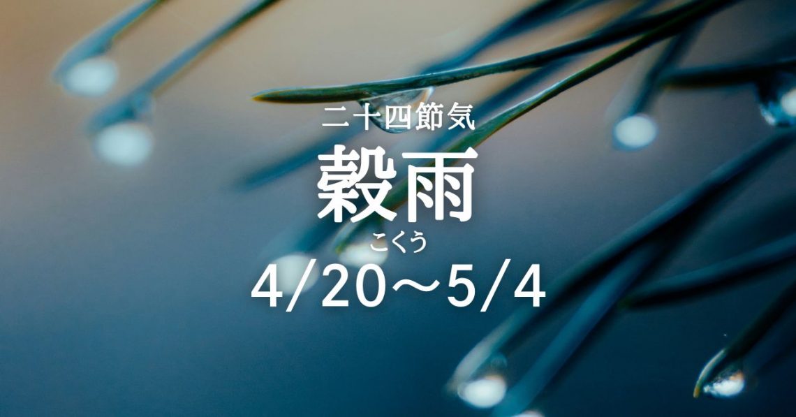 「穀雨」は春の最後の二十四節気。この15日間が終わると「立夏」となり暦の上での夏を迎えます。梅雨の時期はまだ一か月以上も先ですが、ここでは春雨によって大地を潤し、穀物の種や野菜の苗を育てる養分となります。その意味で、テーマは「生育(育成)」といってもいいでしょう。