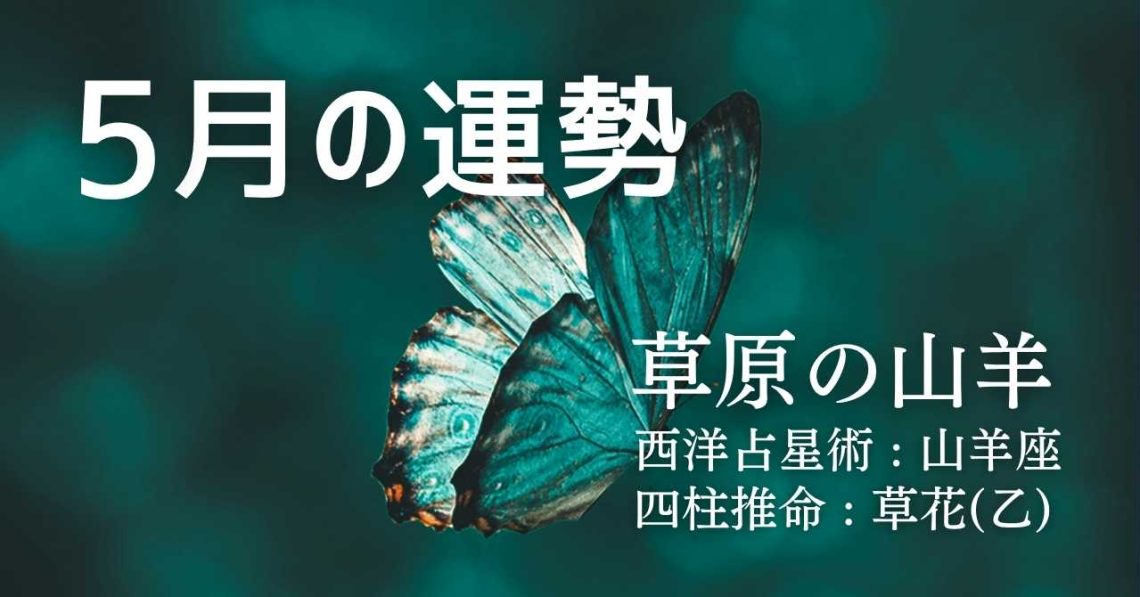 西洋占星術では、あなたは山羊座タイプです。 四柱推命では、あなたは草花(乙)タイプです。 そして、このふたつを融合したソラリタ・タイプでは、あなたは草原の山羊タイプとなります。 ここでは、上記ふたつの占術であなたの5月の…