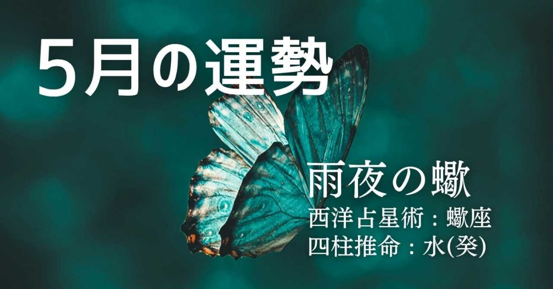 西洋占星術では、あなたは蠍座タイプです。 四柱推命では、あなたは大地(己)タイプです。 そして、このふたつを融合したソラリタ・タイプでは、あなたは大地の蠍タイプとなります。 ここでは、上記ふたつの占術であなたの5月の運勢…