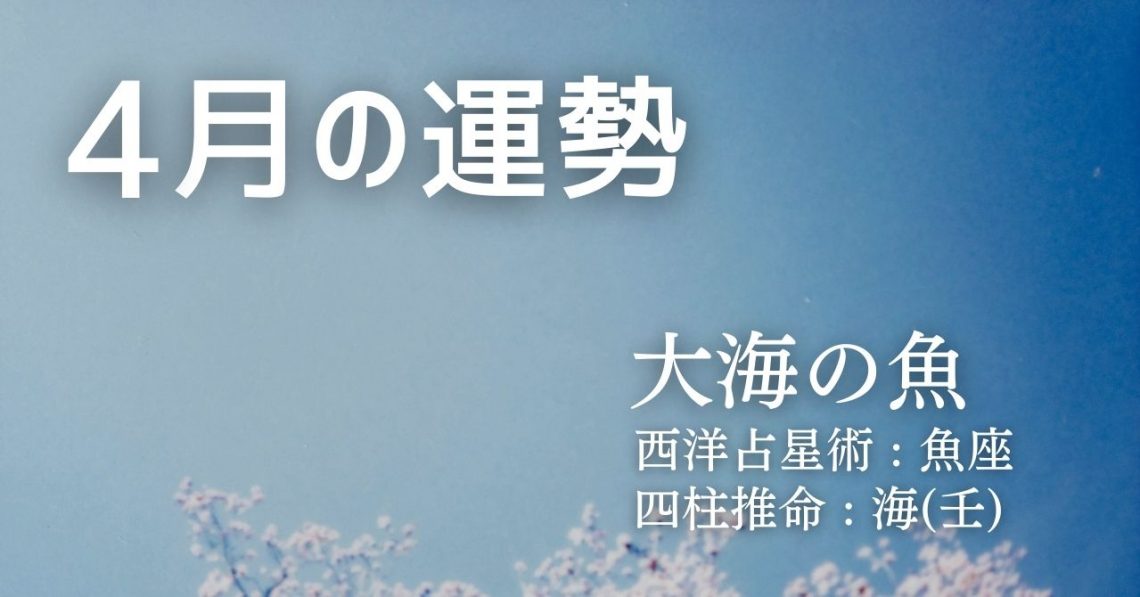 西洋占星術では、あなたは魚座タイプです。 四柱推命では、あなたは海(壬)タイプです。 そして、このふたつを融合したソラリタ・タイプでは、あなたは大海の魚タイプとなります。 ここでは、上記ふたつの占術であなたの4月の運勢を…