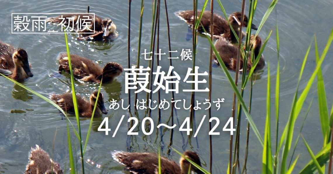 二十四節気「穀雨」の初候が、七十二候の「葭始生(あしはじめてしょうず)」です。 二十四節気・穀雨の初候は「葭始生」(あしはじめてしょうず)です。日本では「葭(葦:アシ、ヨシ)」ですが、中国では「萍(へい:浮き草)」と表現…