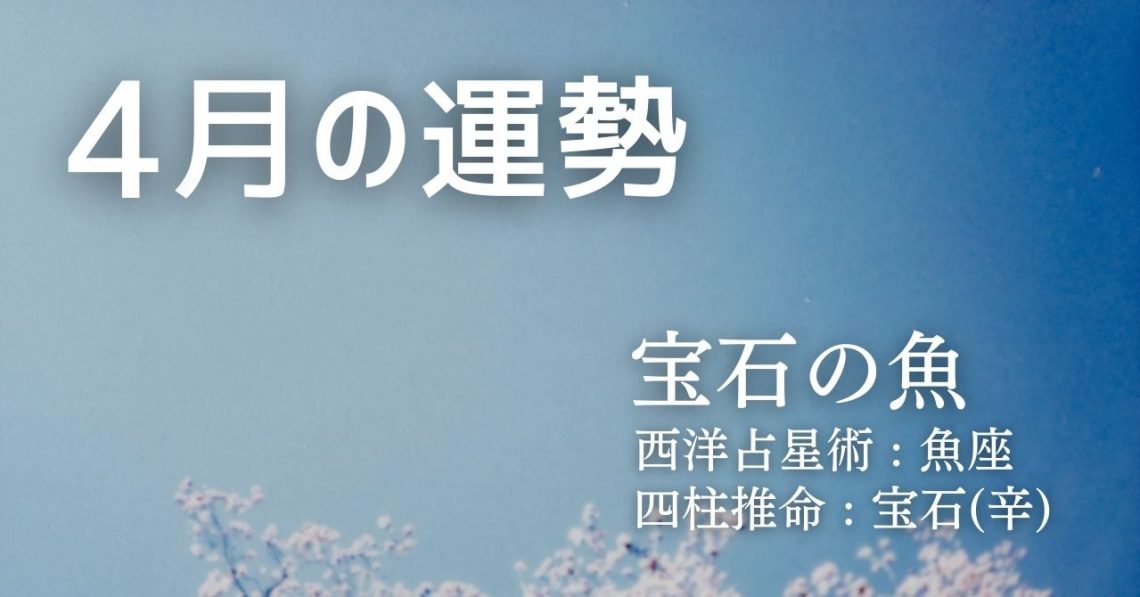 西洋占星術では、あなたは魚座タイプです。 四柱推命では、あなたは宝石(辛)タイプです。 そして、このふたつを融合したソラリタ・タイプでは、あなたは宝石の魚タイプとなります。 ここでは、上記ふたつの占術であなたの4月の運勢…