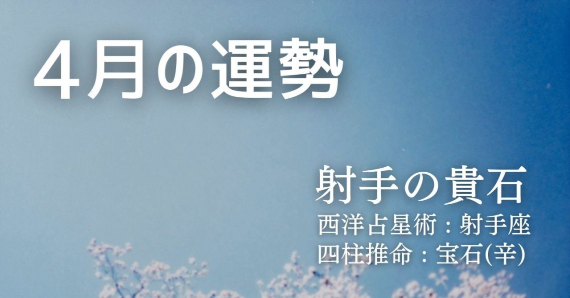 西洋占星術では、あなたは射手座タイプです。 四柱推命では、あなたは宝石(辛)タイプです。 そして、このふたつを融合したソラリタ・タイプでは、あなたは射手の貴石タイプとなります。 ここでは、上記ふたつの占術であなたの4月の…