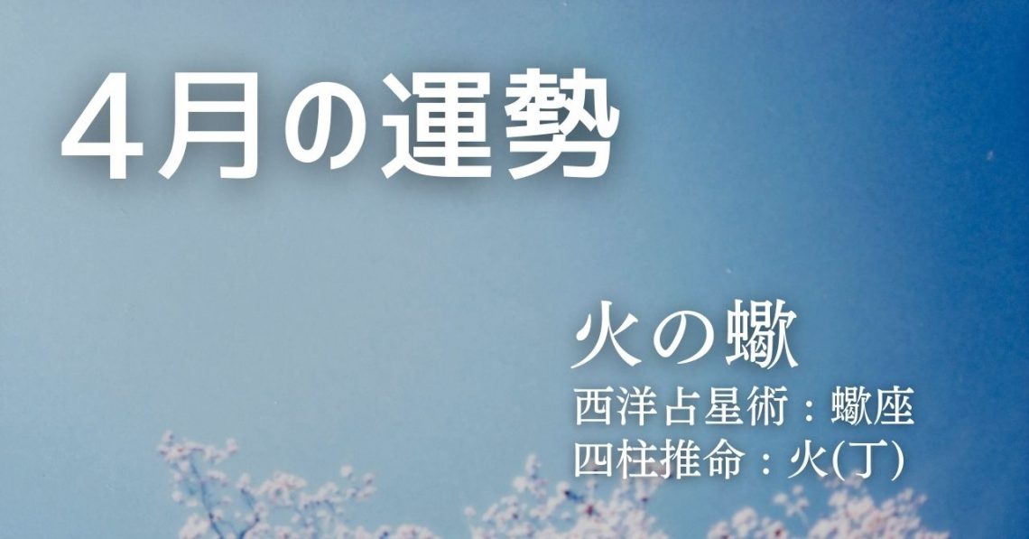 西洋占星術では、あなたは蠍座タイプです。 四柱推命では、あなたは火(丁)タイプです。 そして、このふたつを融合したソラリタ・タイプでは、あなたは火の蠍タイプとなります。 ここでは、上記ふたつの占術であなたの4月の運勢を占…