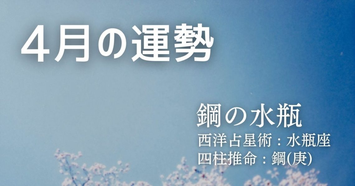 西洋占星術では、あなたは水瓶座タイプです。 四柱推命では、あなたは鋼(庚)タイプです。 そして、このふたつを融合したソラリタ・タイプでは、あなたは鋼の水瓶タイプとなります。 ここでは、上記ふたつの占術であなたの4月の運勢…