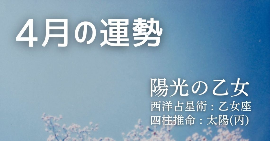 西洋占星術では、あなたは乙女座タイプです。 四柱推命では、あなたは太陽(丙)タイプです。 そして、このふたつを融合したソラリタ・タイプでは、あなたは陽光の乙女タイプとなります。 ここでは、上記ふたつの占術であなたの4月の…