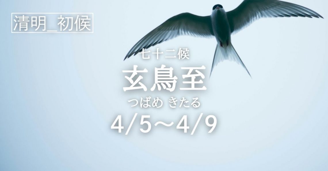 二十四節気「清明」の初候が、七十二候の「玄鳥至(つばめ きたる)」です。 「清明」節の初候、「玄鳥至(つばめ きたる)」の5日間となります。清明の名の通り、温かくて清々しい光が降り注ぐなか、ツバメの親はせっせと餌を運んで…